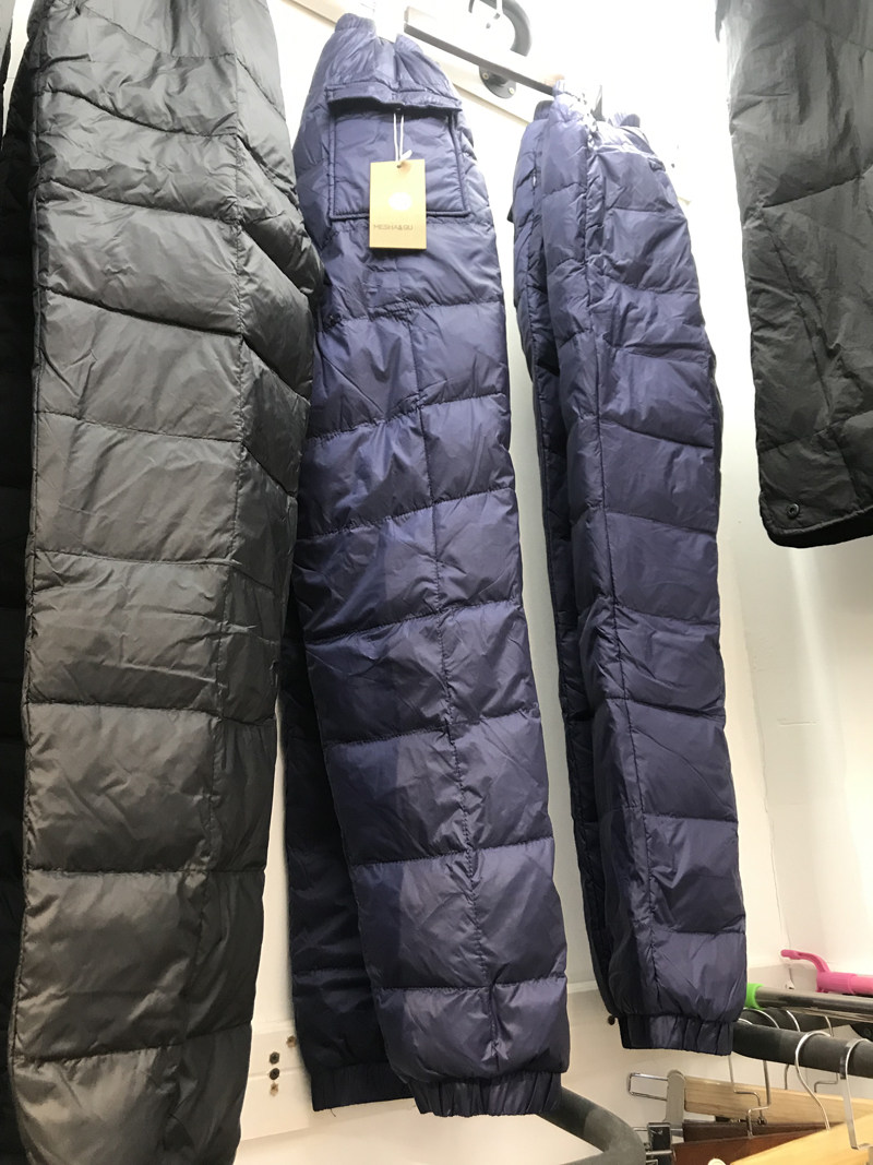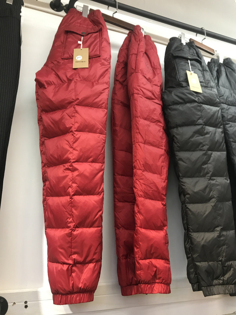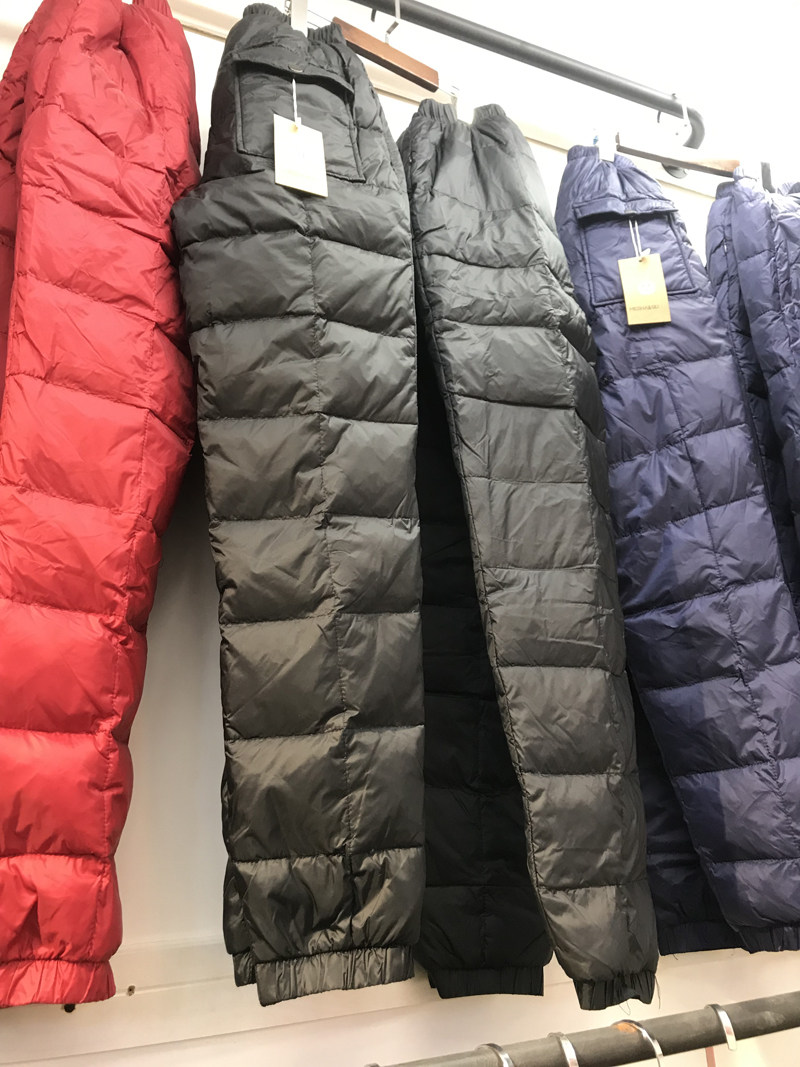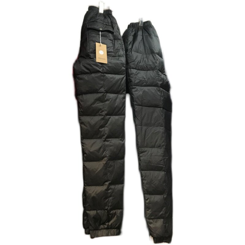 Plus fertilizer plus size down pants for men and women wear high waist thick loose white duck down pants middle-aged and elderly father winter