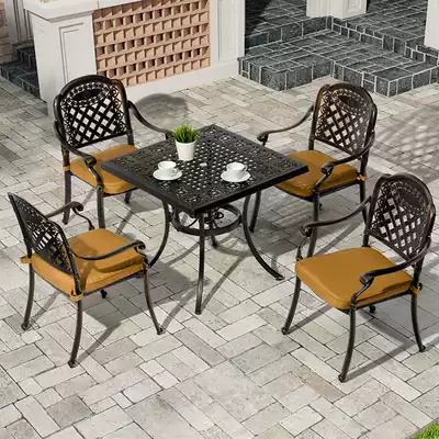 Outdoor cast aluminum table and chair five or seven piece set villa garden courtyard leisure table hotel high grade outdoor table and chair combination