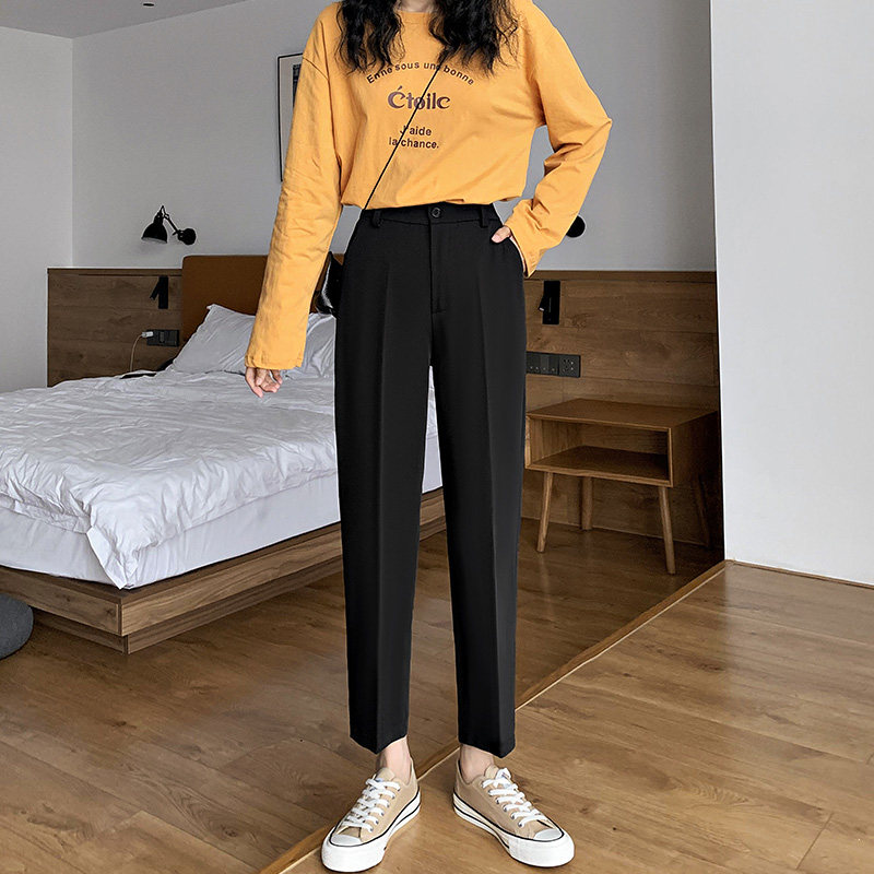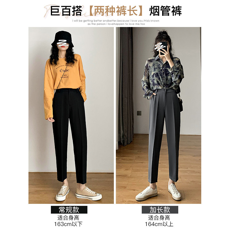 Suit pants women's straight loose spring and autumn 2021 new high waist thin hanging sense of wild casual nine-point smoke pipe pants