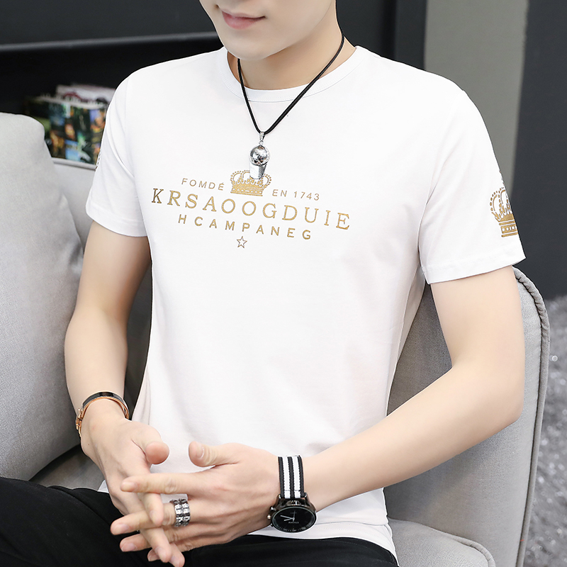 Fugui Bird Summer Ice Silk Short Sleeve T-Shirt Men Personality Fashion Round Collar Half Sleeve Trend 100 Lap Casual Clothes