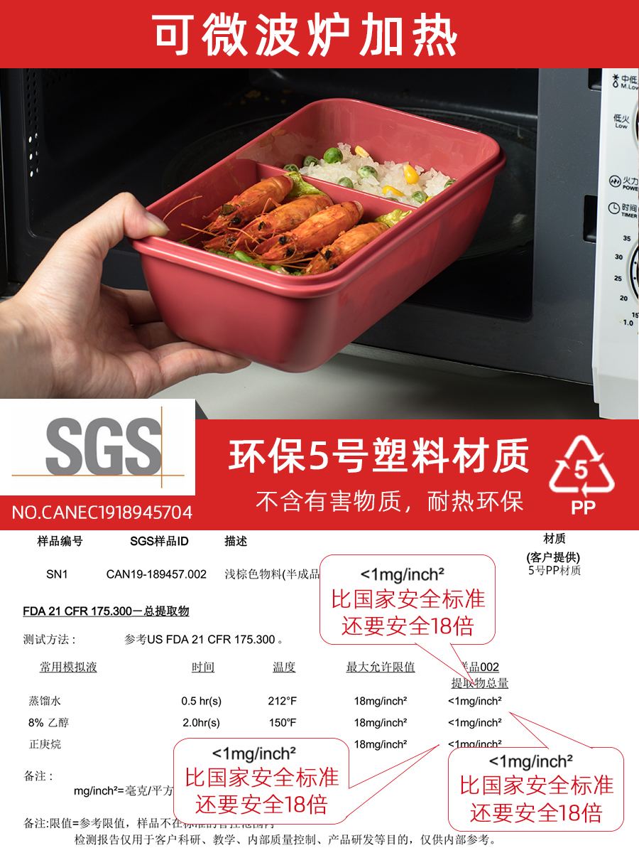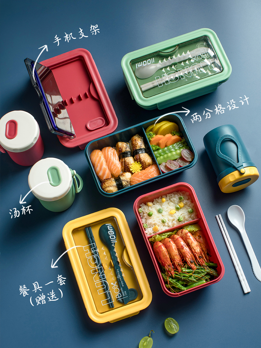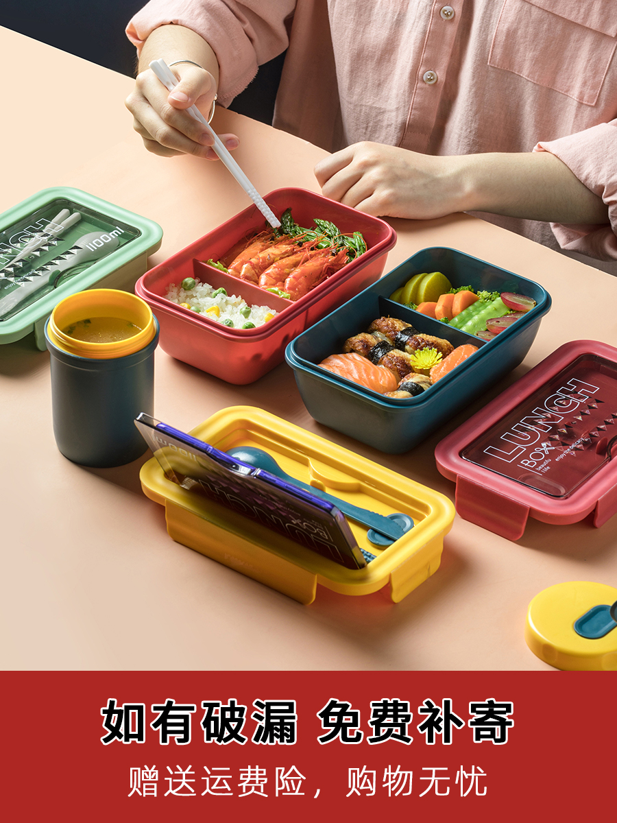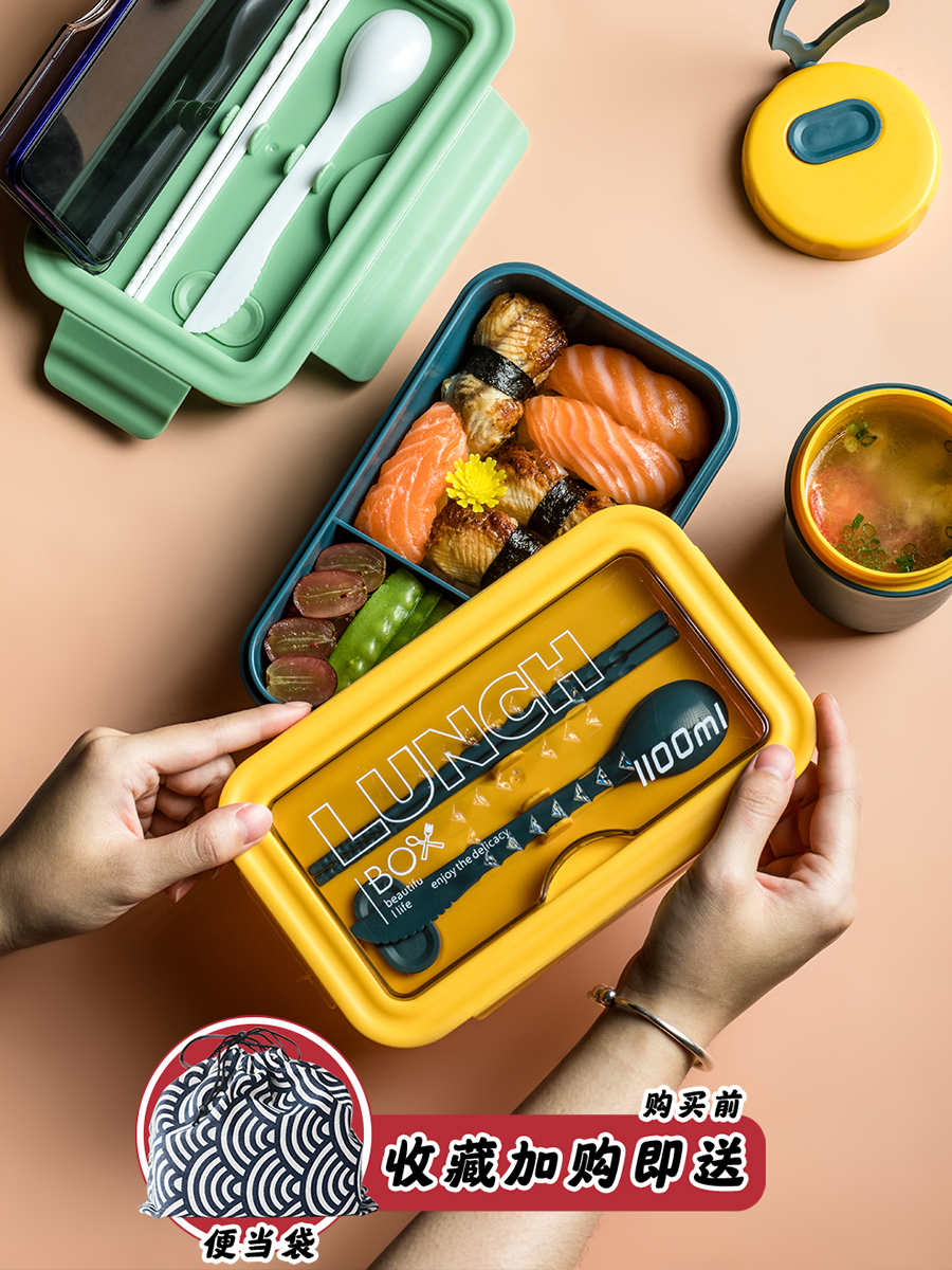 Portable divider lunch box with tableware office workers can microwave the split large capacity student single-layer bento box