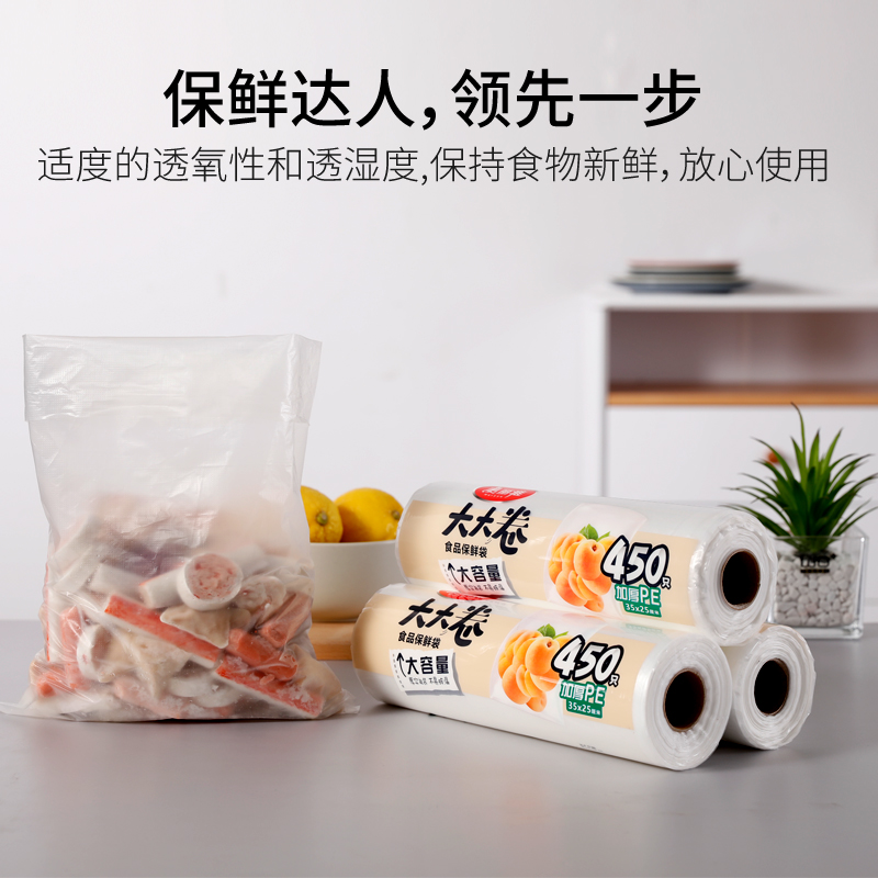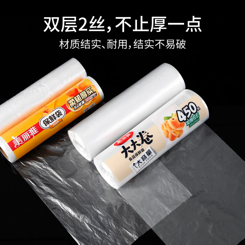 Beautiful Ya large roll fresh-keeping bag household economical roll disposable food bag sealed bag packaging bag point-off type