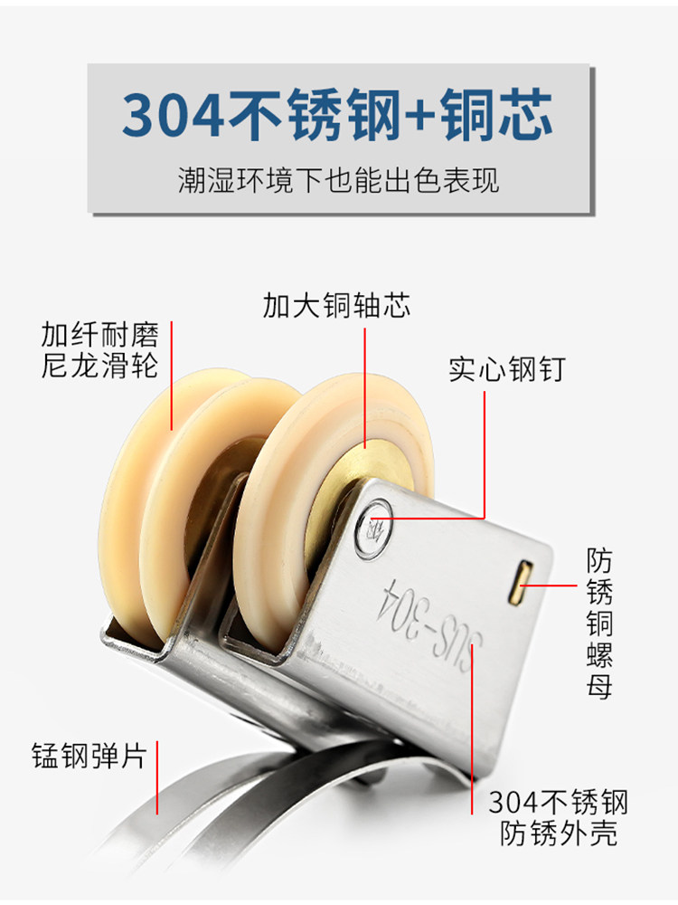 Bathroom Makeup Room Glass Ramen Rail Roller wardrobe Ramen pulley Lower wheel 304 stainless steel recessed cam