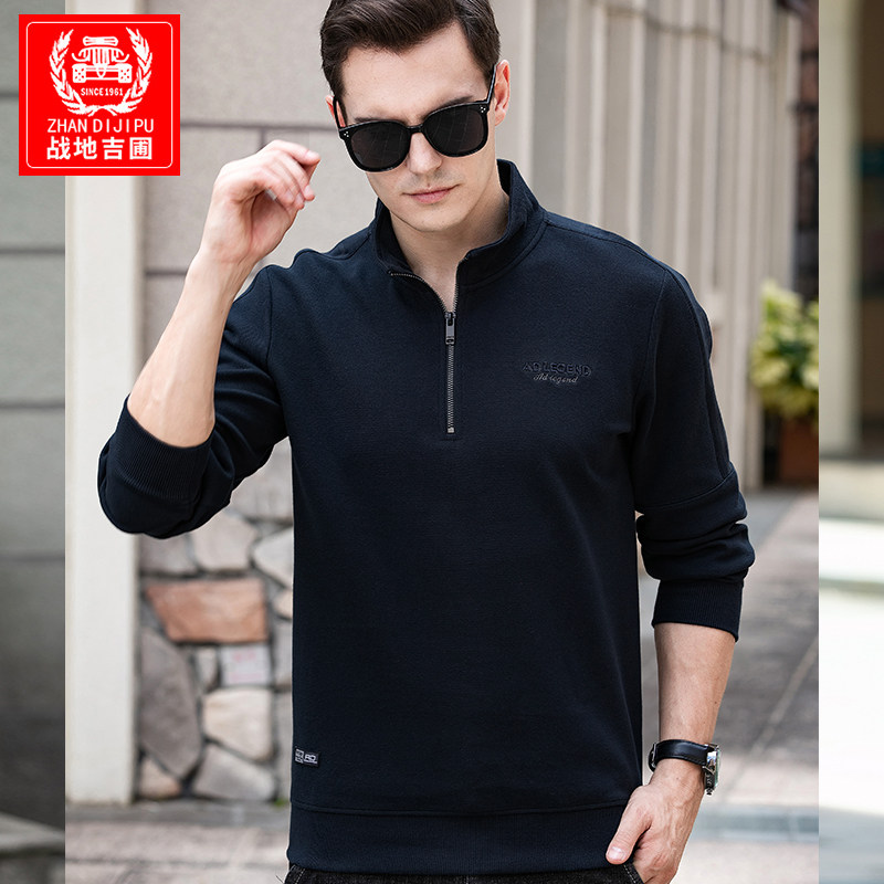 Autumn clothing sweatshirt male collar middle-aged loose casual blouses men's wear long sleeves T-shirt jacket head clothes large size for undershirt