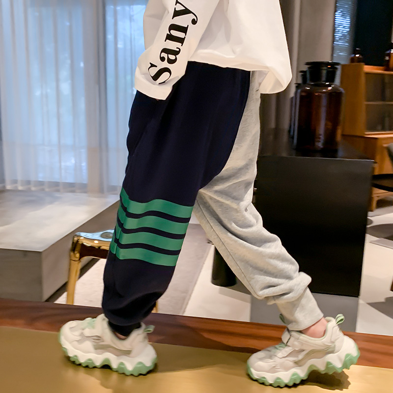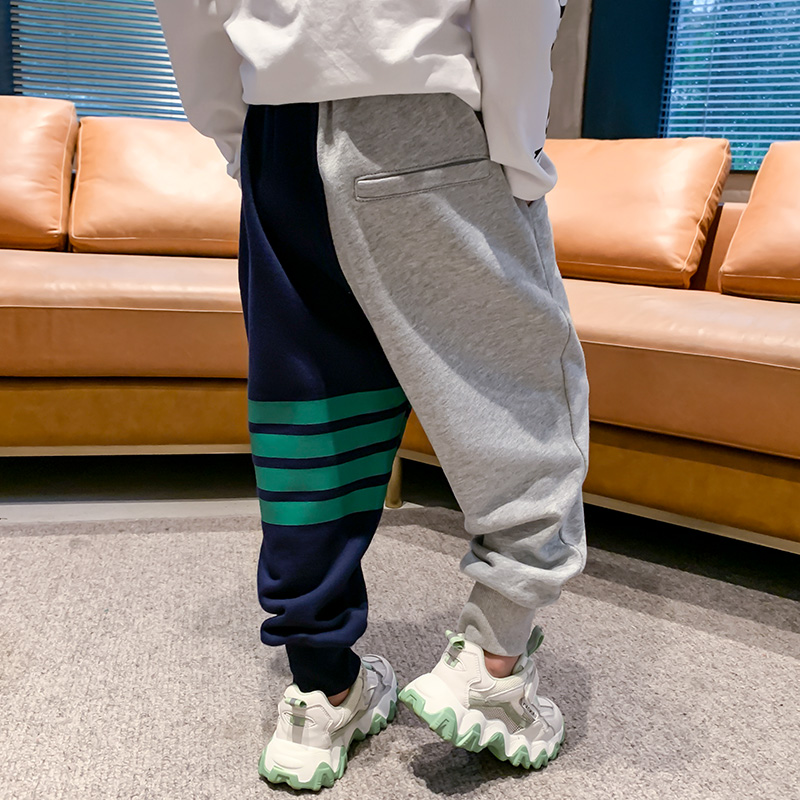 Boys' autumn and winter pants 2022 new children's sports pants one-piece velvet trousers for boys plus velvet tide
