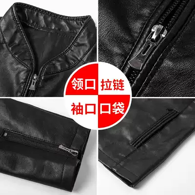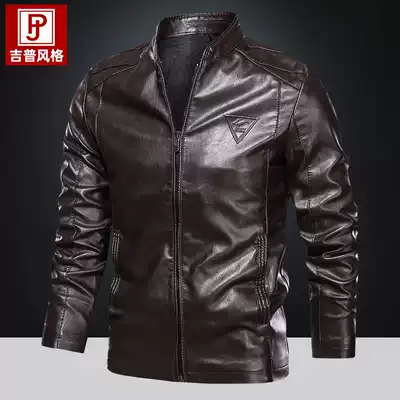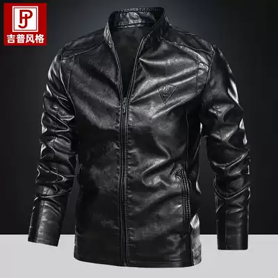 Autumn new stand collar slim slim motorcycle leather jacket men's large size fat man washed leather jacket youth trend leather jacket