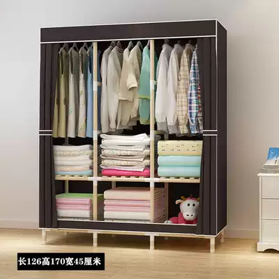 Simple wardrobe commoner cabinet assembly solid wood fabric storage household rental room with modern simplicity, strong and durable