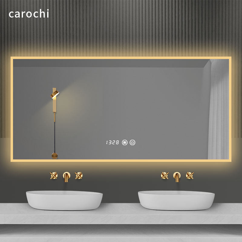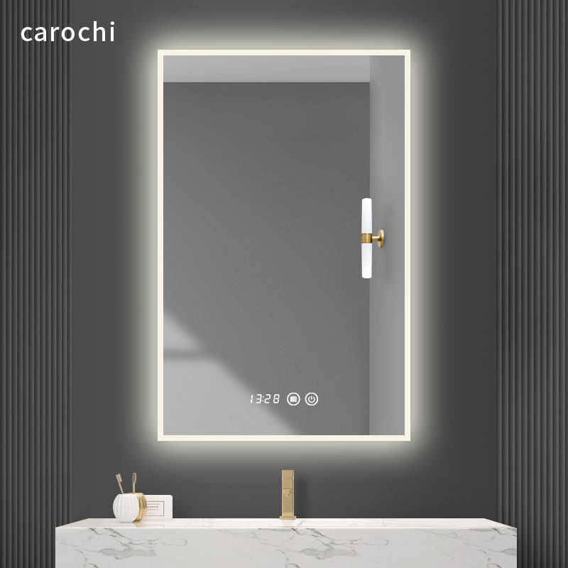 Powder room mirror with touch switch Luminous bathroom mirror Bathroom mirror Perforated wall hanging smart bathroom mirror