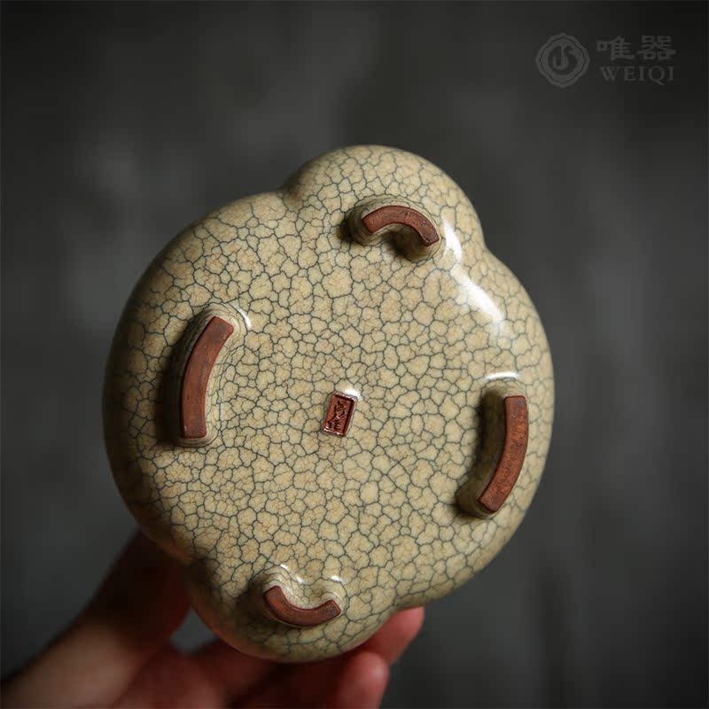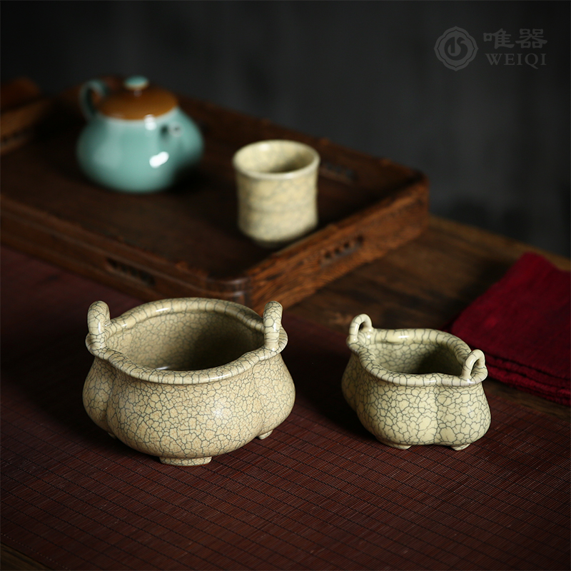 Celadon master Wu Junchun handmade incense burner handed down from Ge kiln gold wire and iron wire incense burner ceramic flower pot collection