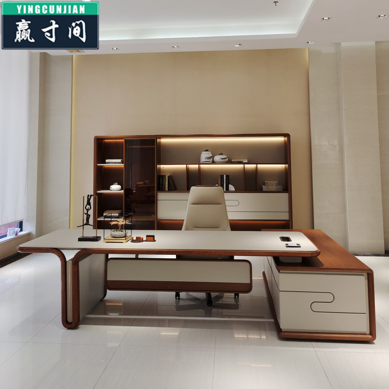 Guangdong New Chinese boss Table Solid Wood Paint Large Banquet High-end Atmospheric President Desk Wanut Wood