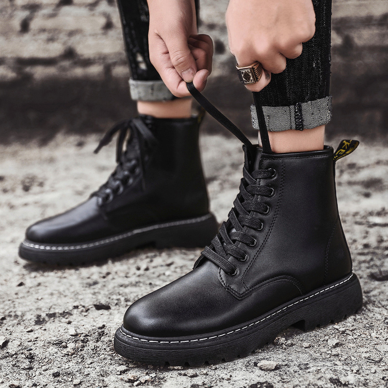 Autumn Winter Martin Boot Men's High Help Inron Korean version Overalls boots 100 hitch to help black locomotive men's boots leather boots-Taobao