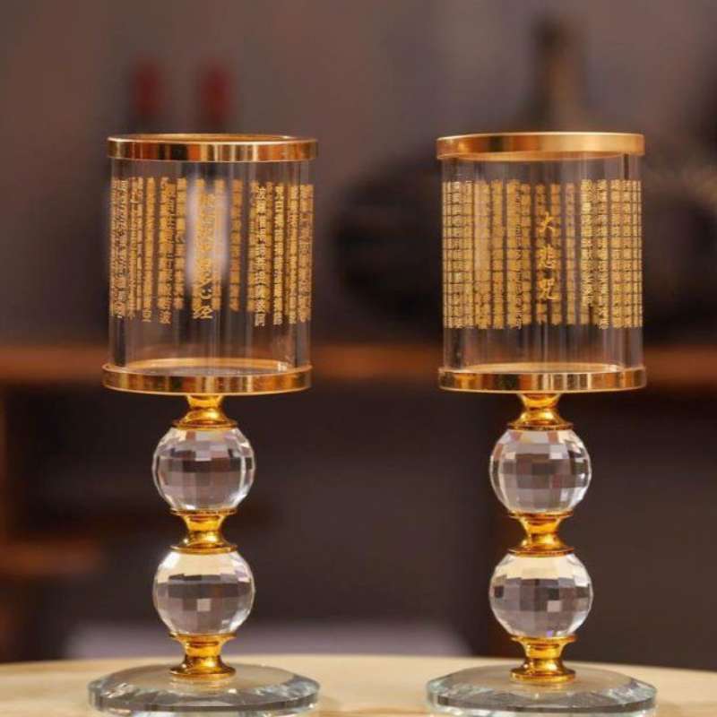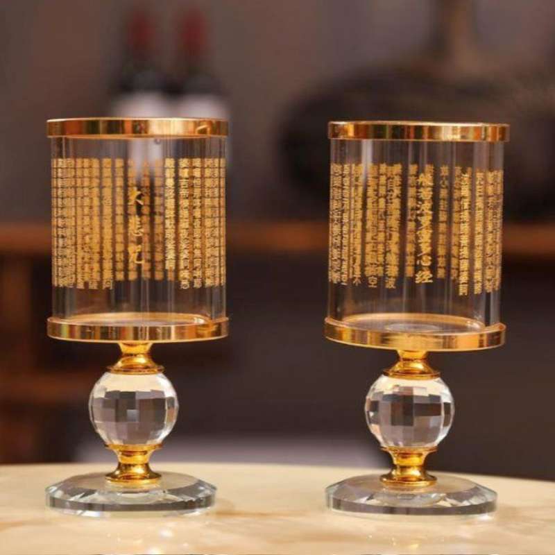 Great Tragic Spell Crystal Ghee Lamp Holder Fo front long Ming light windproof lampshades Home Heart Candlelit Candlelit Candleholder Buddha Supplies