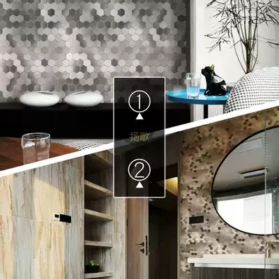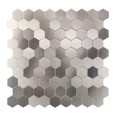 Hexagon metal mosaic wall sticker stainless steel background wall dressing room living room tile self-adhesive Aluminum plastic board adhesive brick