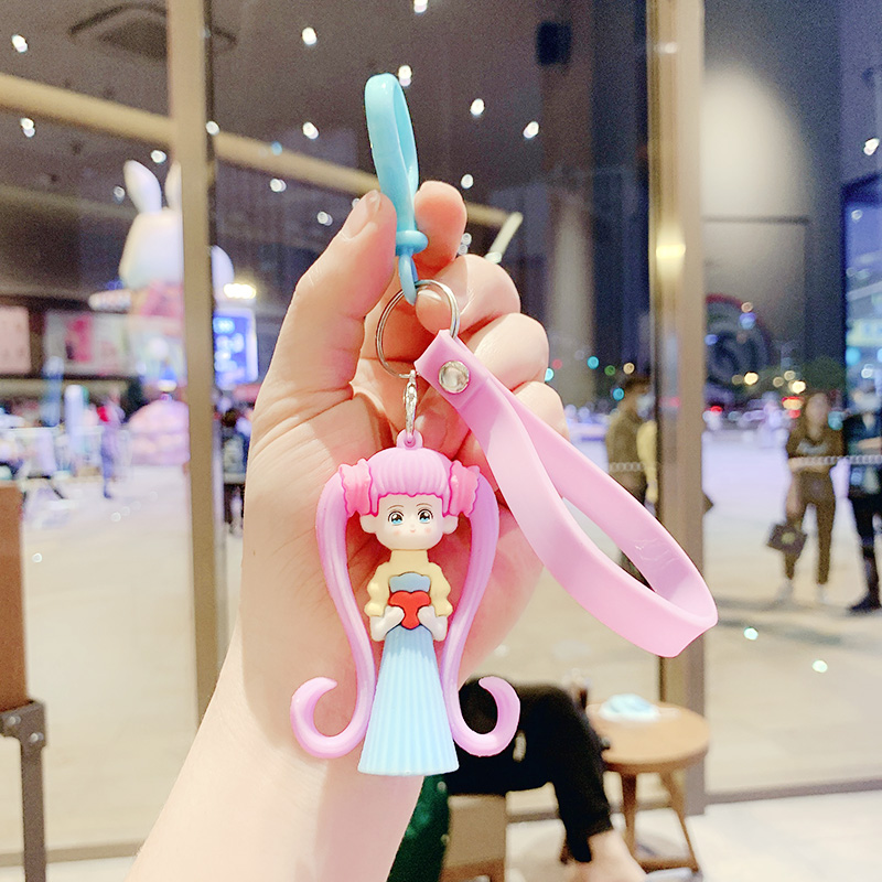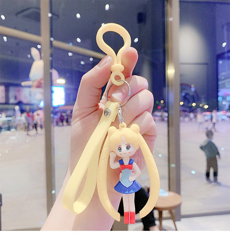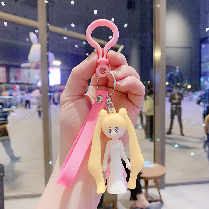 Beauty Girl Key Button Small Pendant Key Chain Woman Cute Water Ice Moon Cute Car Hangover Personality Creative Circle Ring