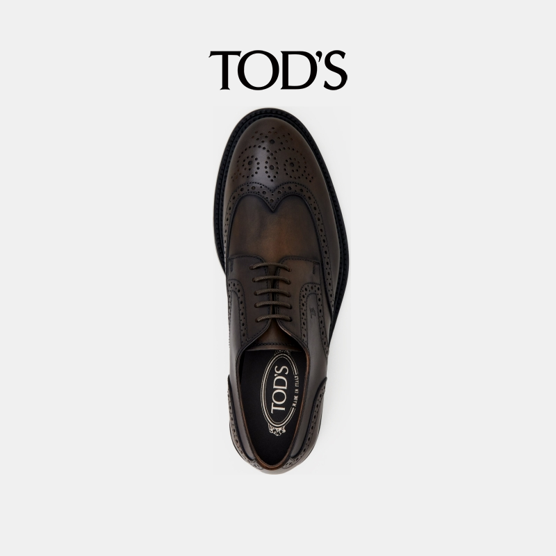 TODS official men's leather lace-up shoes carved Brogue old retro style casual leather shoes men's shoes
