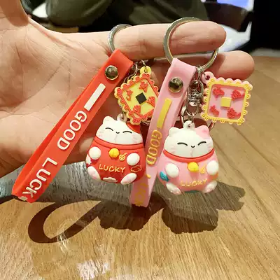 Cai Cai Cat Car Girl Pendant Couples Key Refining ins Net Red Tide Creative Cute Keychain Schoolbag Hanging