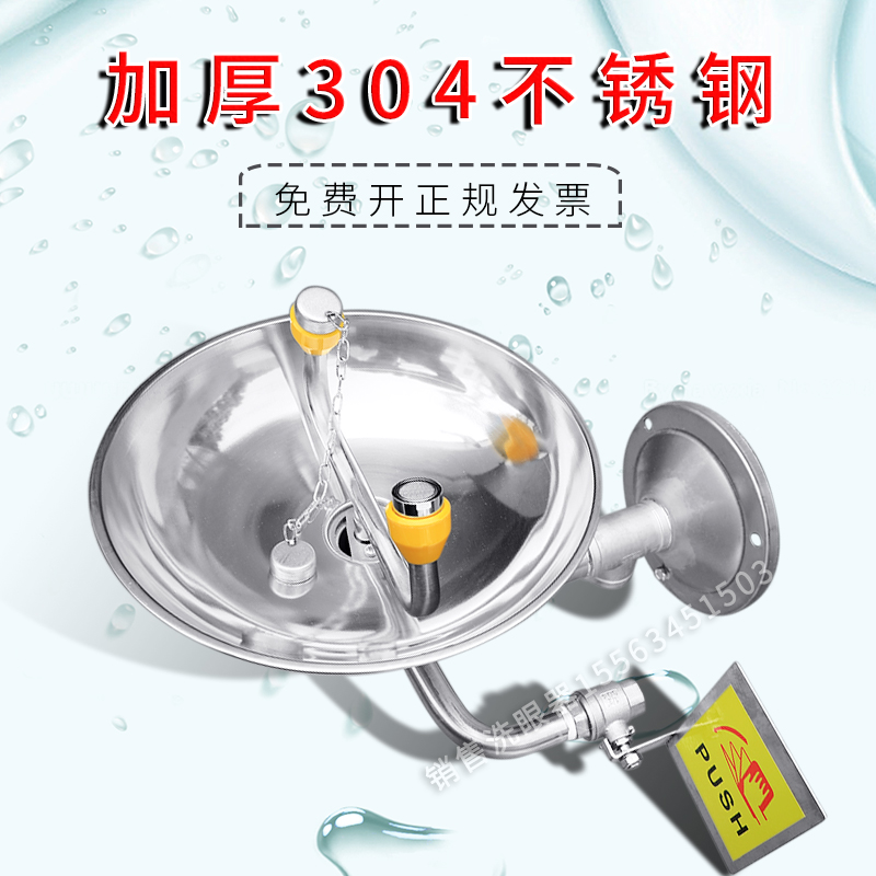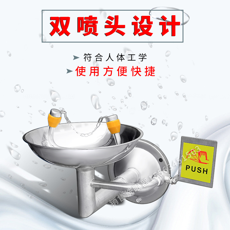 Quality 304 stainless steel upright hanging wall type emergency double inspection plant punching and rinsing eyeware Benchamps
