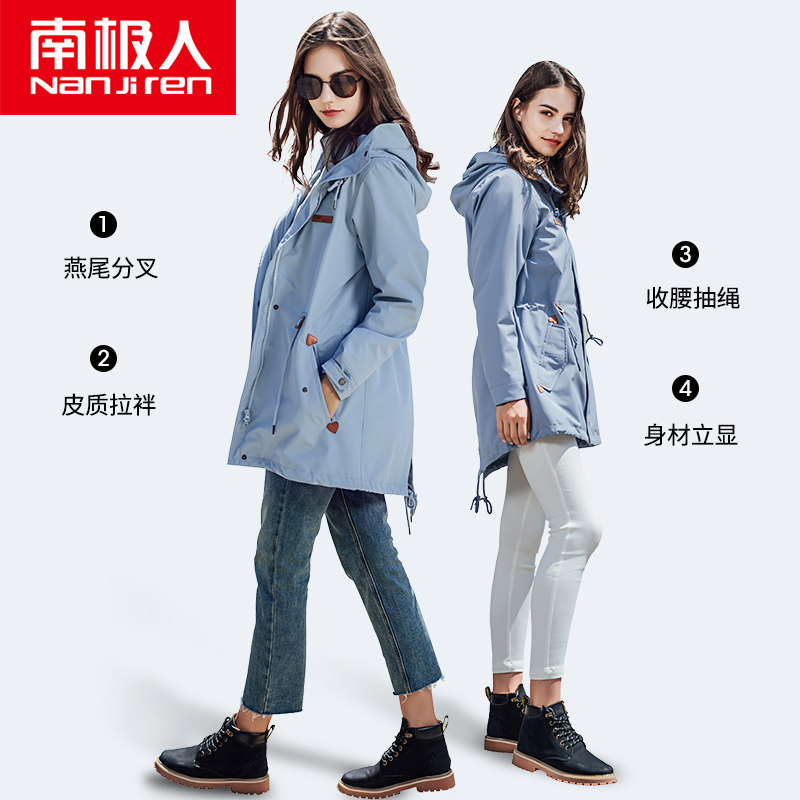 Antarctic outdoor stormtrooper women's fashion brand Korean medium and long three-in-one detachable two-piece waterproof and windproof