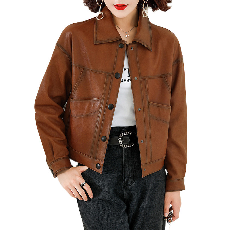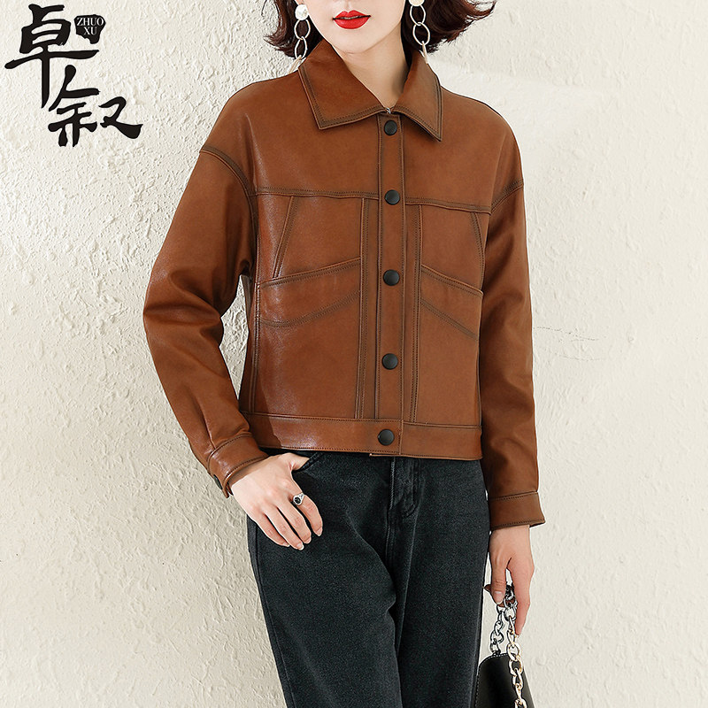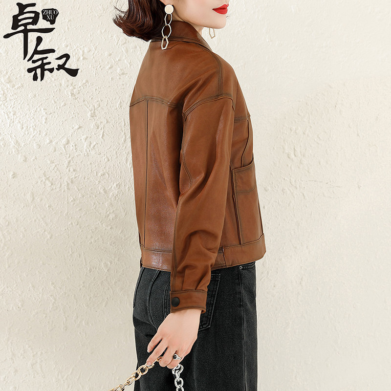 Genuine leather jacket ladies short 2021 new autumn Haining sheepskin thin and soft motorcycle jacket
