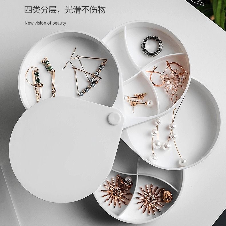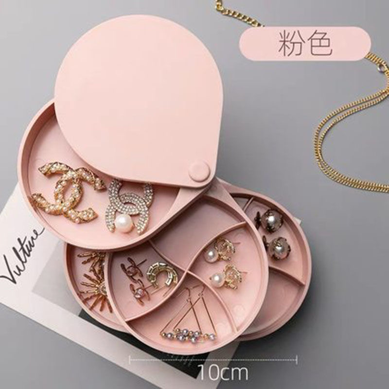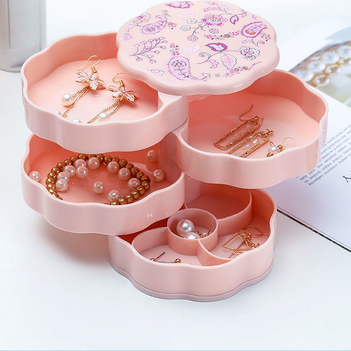 Transparent rotating jewelry box storage household large-capacity packaging jewelry makeup desktop sundries small lattice cute