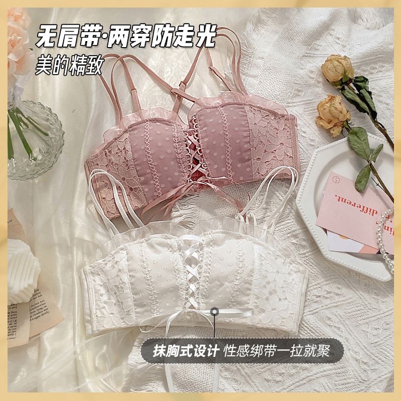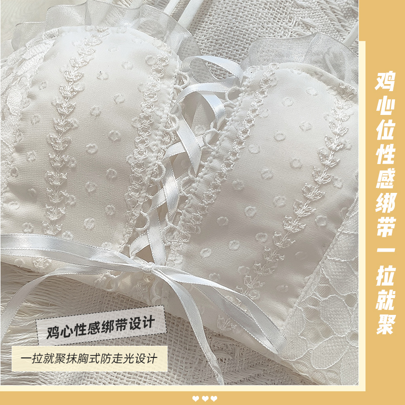 Trowel-style anti-walking light sexy lace merry-back lingerie without steel ring pull rope to gather auxiliary milk teenage girl lingerie suit
