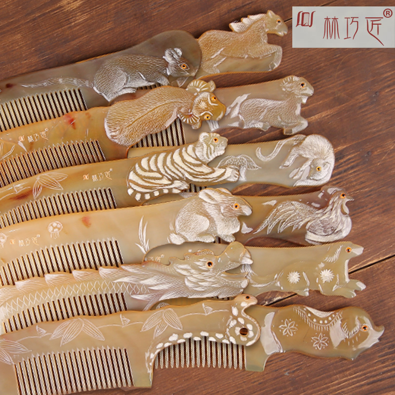 Natural horn comb 12 zodiac carving comb boutique hand carved birthday wedding gift girl long hair home