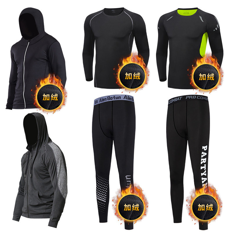 Good Andema fitness suit men's sports plus velvet warm quick-drying winter running yoga basketball suit men