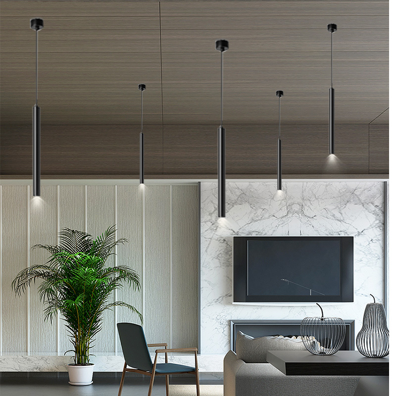 Dining room chandelier lamp cylindrical long downlight modern minimalist personality bar cylindrical lamp golden spotlight cylindrical chandelier