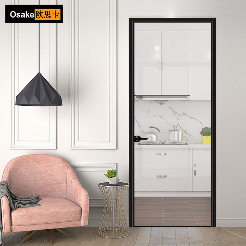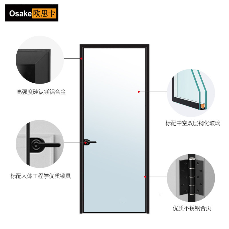 Powder room door Toilet door Titanium magnesium alloy simple household bathroom bathroom tempered glass kitchen partition single door