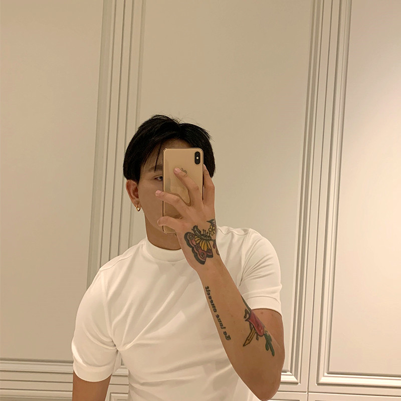 BROTHER Autumn Winter Men's Basic LeggingS T Short Sleeve Youth Lean Velvet Fabric Stretch Soft Top Tide