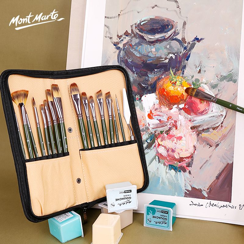 Montmartre Oil Paint Pen Set Fine Art Acrylic Gouache Brush Fan-shaped Row Pen Beginner Hand-Painted Wall Painting Color Pen Supplies Watercolor Pen Painting Brush