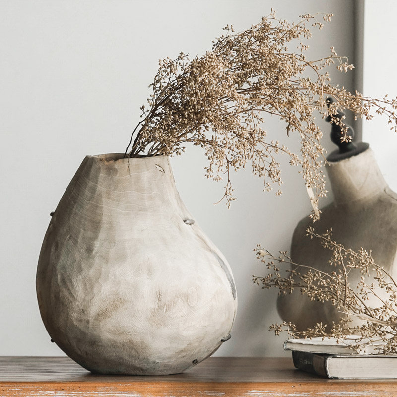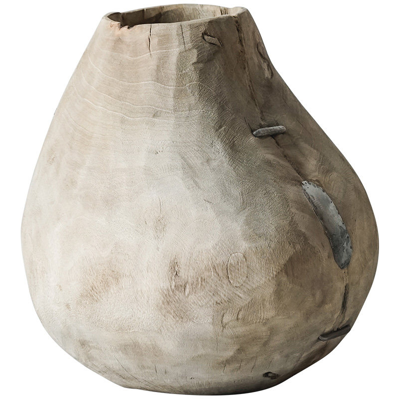 The Silent Wind Old Wood Round Bottom Large Vase handmade retro to make old folk livingroom floor swinging pieces solid wood florers
