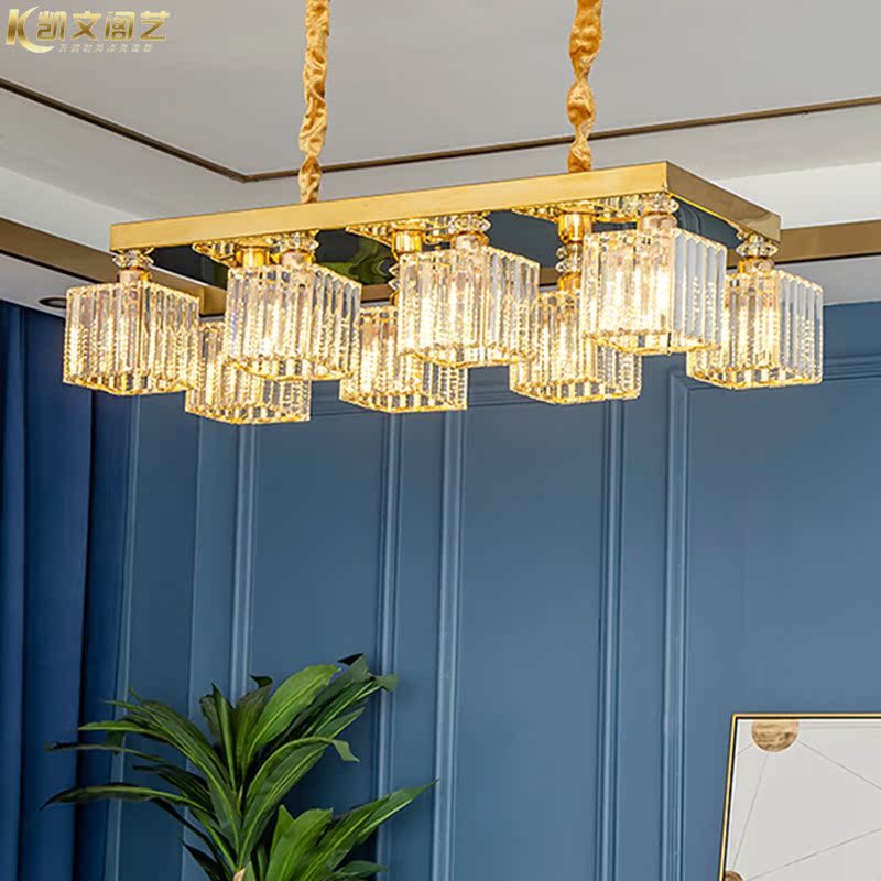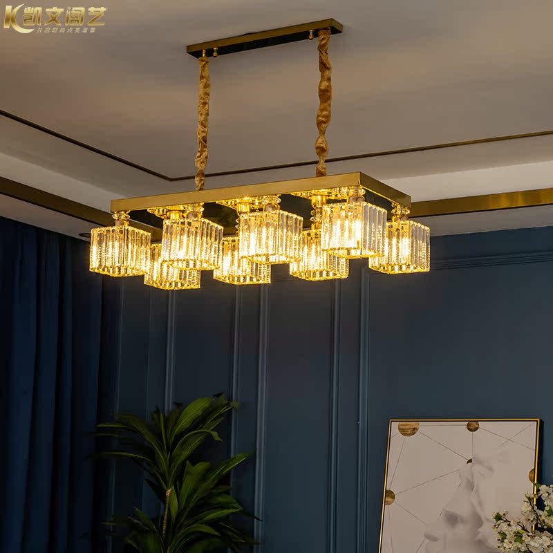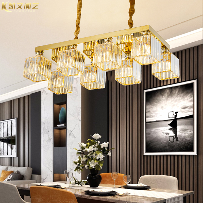 Light luxury aftermodern restaurant lamp rectangular crystal chandelier ceiling lamp LED restaurant chandelier chandelier
