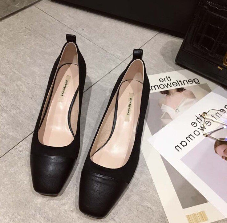 Europe station 2022 Summer new square head light mouth genuine leather coarse heel single shoe woman fashion 100 hitch OL career high heel shoes