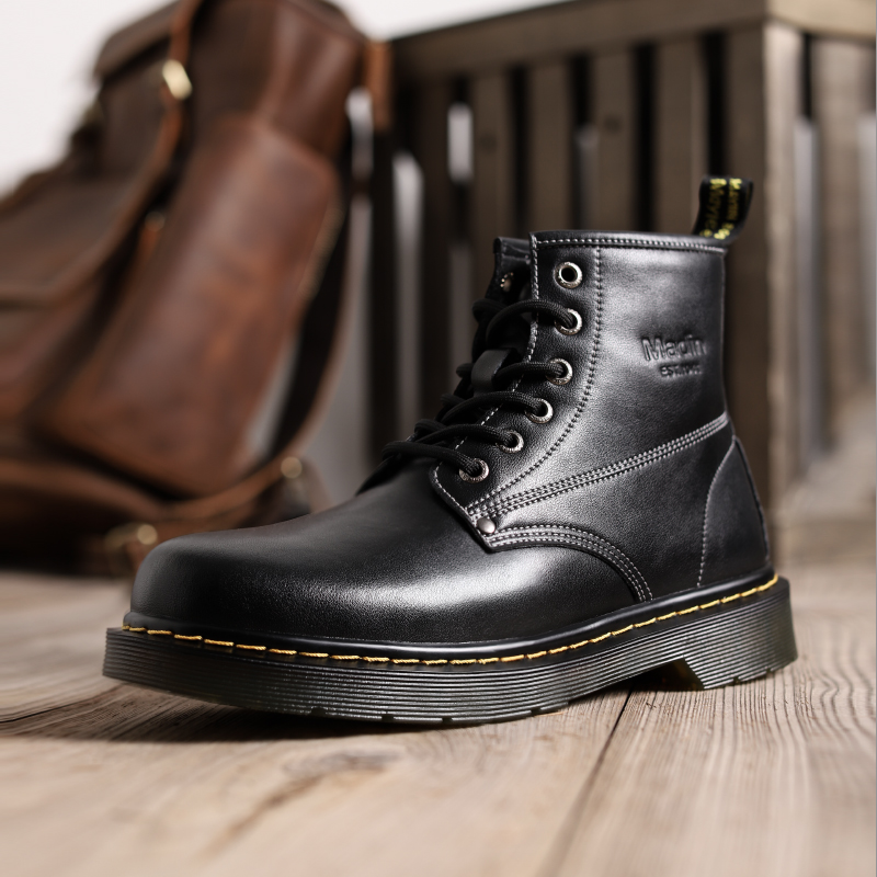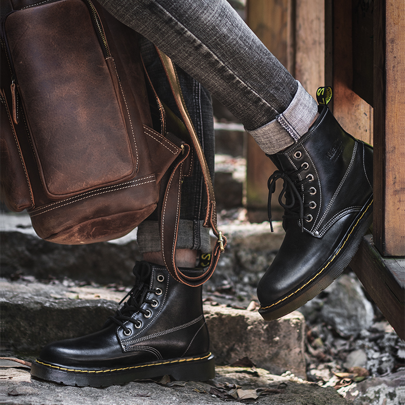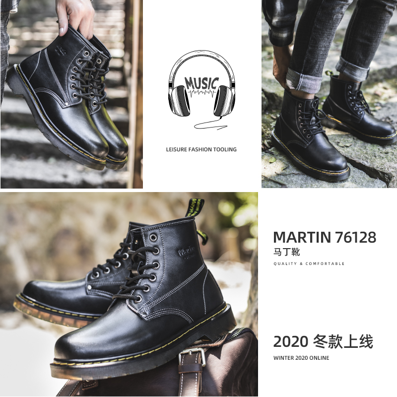 Martin boots male high cylinder tooling boots Inlenty wind middle cylinder leather boots Korean version 100 hitch shoes black short boots Fall men's shoes