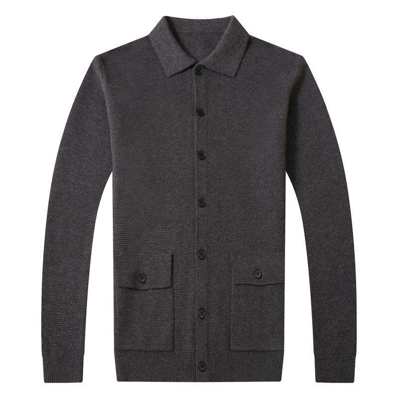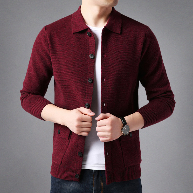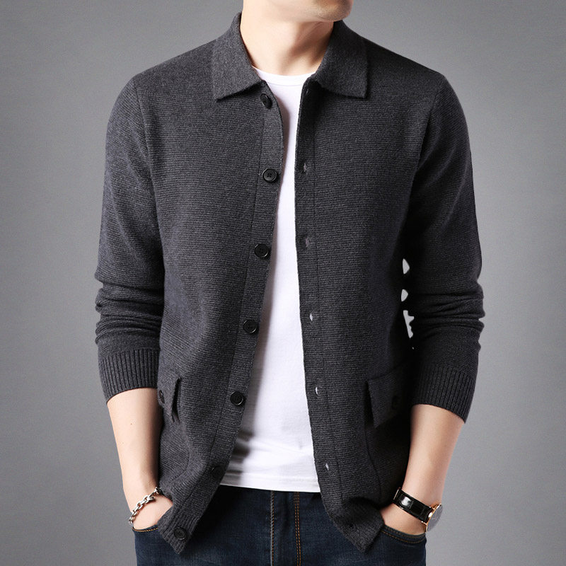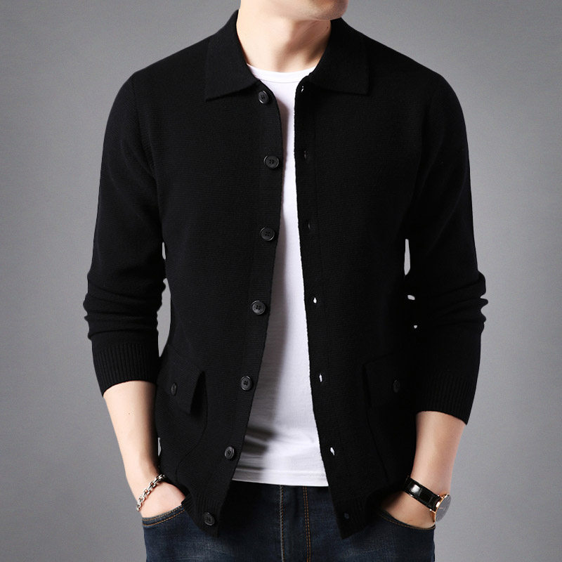 Autumn simple knitted cardigan men's outerwear solid color sweater men's lapel button sweater trendy pocket jacket