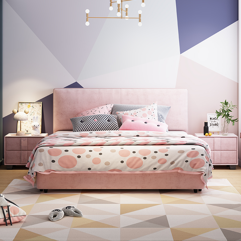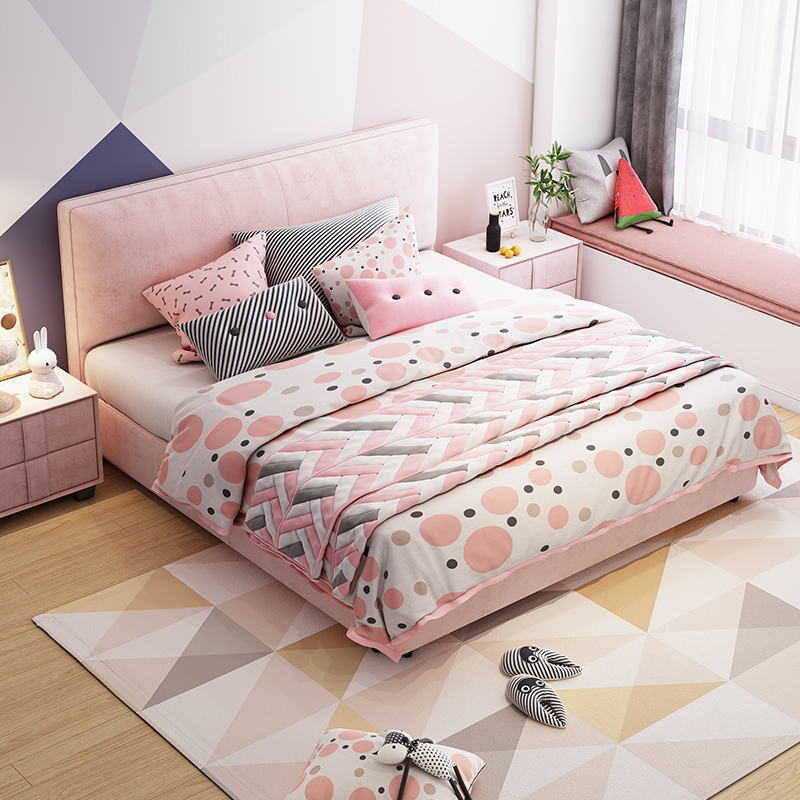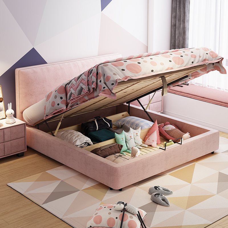 ins net red bed Nordic bed female girl light luxury children's fabric bed storage double bed girl bed master bedroom wedding bed