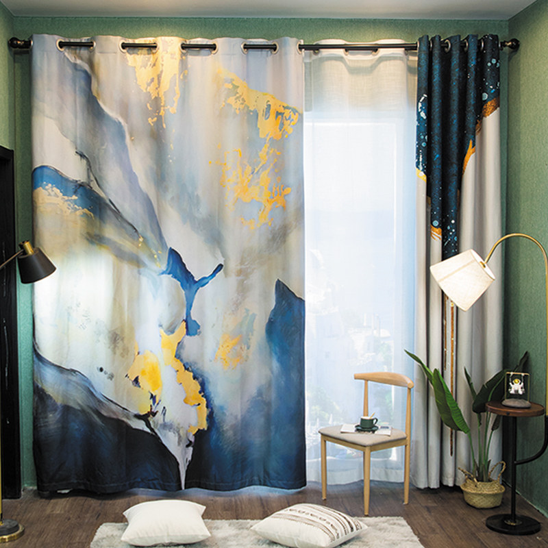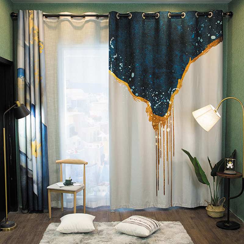 2021 Coarse Hemp Villa Art Oil Painting Decoration Painting Full Shading Thickened Shading Room Floor Window Shaping Curtains