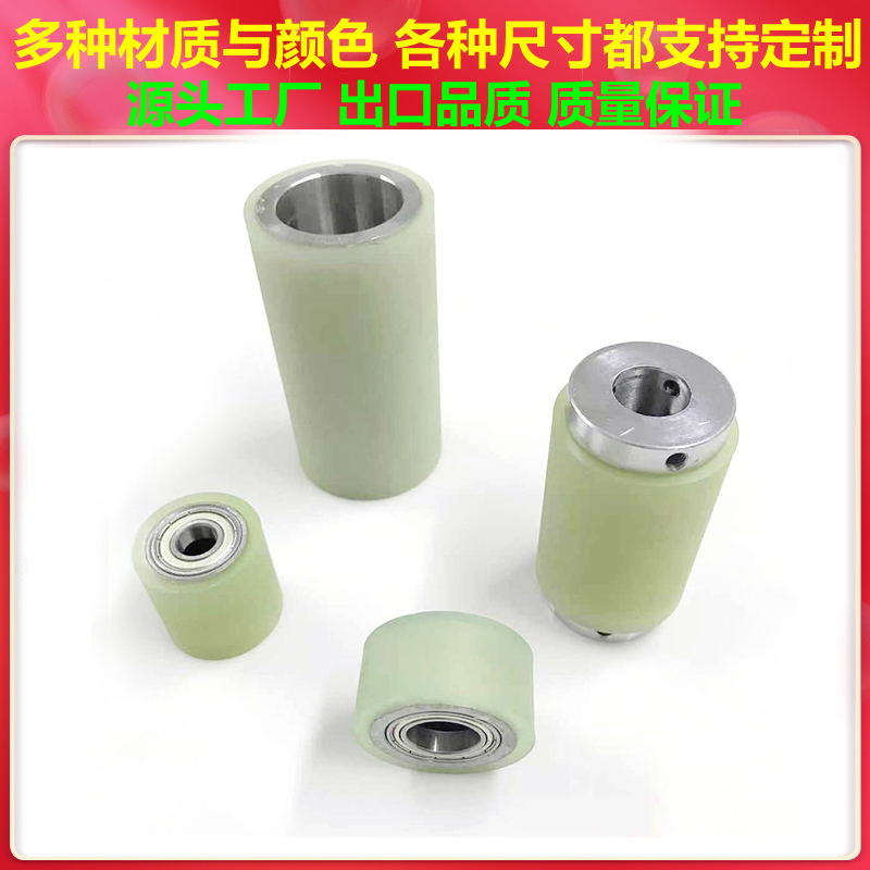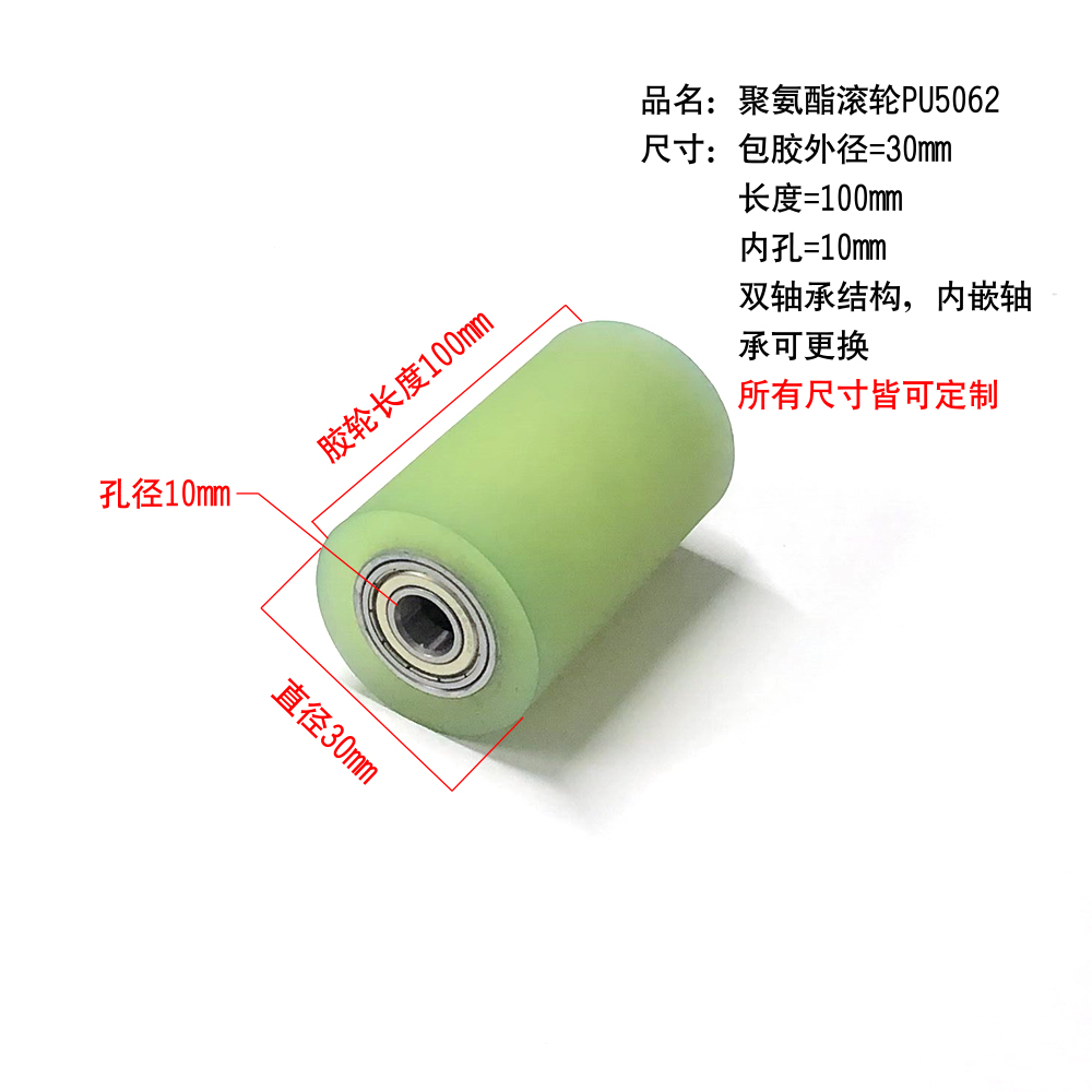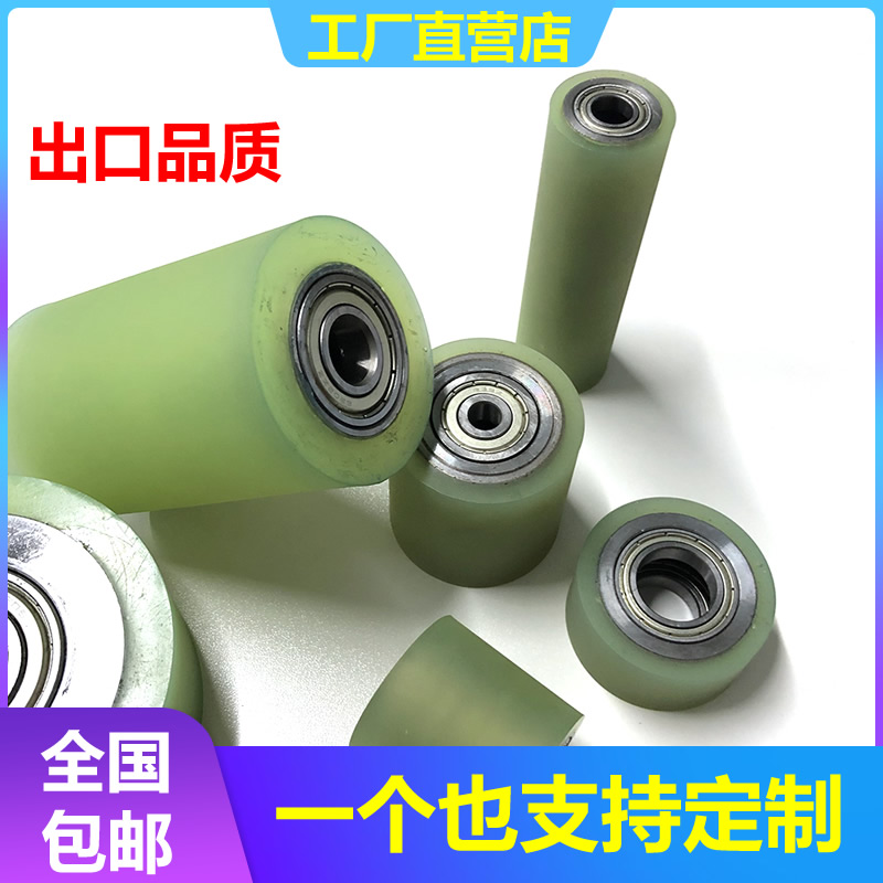 Polyurethane lagging wheel PU double bearing non-powered roller wear-resistant rubber roller roller conveyor belt overmolding roller customization