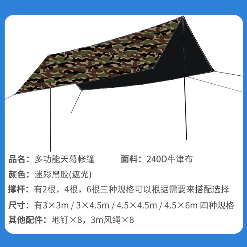 Outdoor oversized canopy tent rain-proof beach-proof sun-proof fishing arbor UV-resistant camouflage sunshade cloth