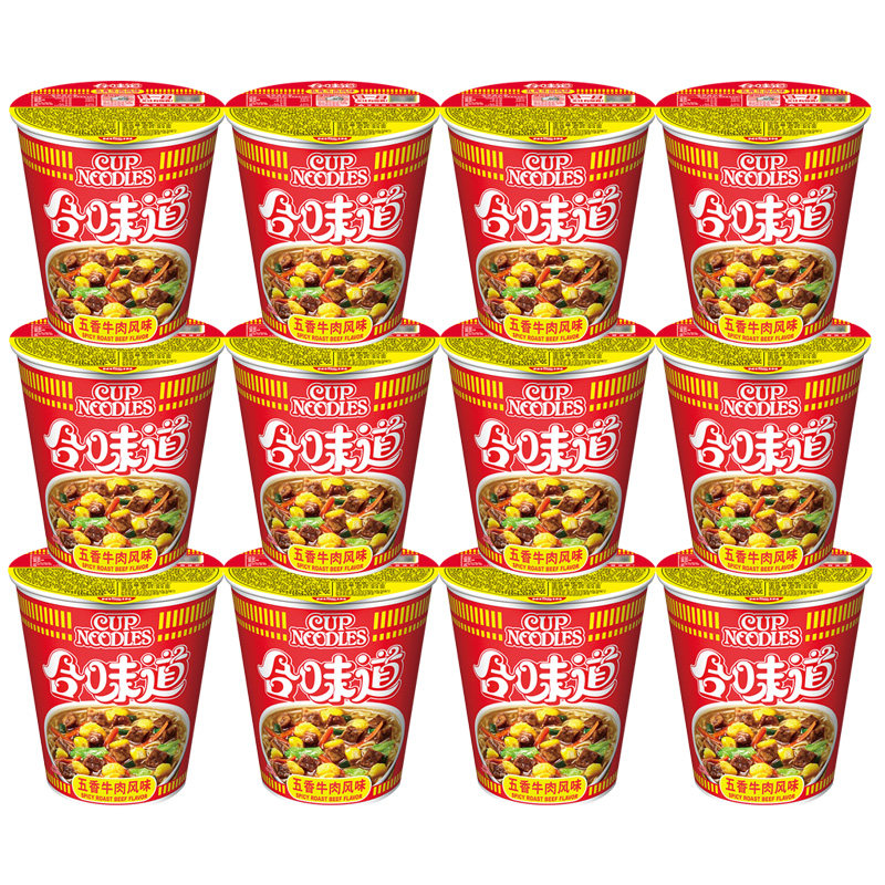 Nissin Cup Noodles Instant Noodles Spiced Beef Flavor 12 cups Full Carton Instant Noodles Nostalgic Open Cup Fun