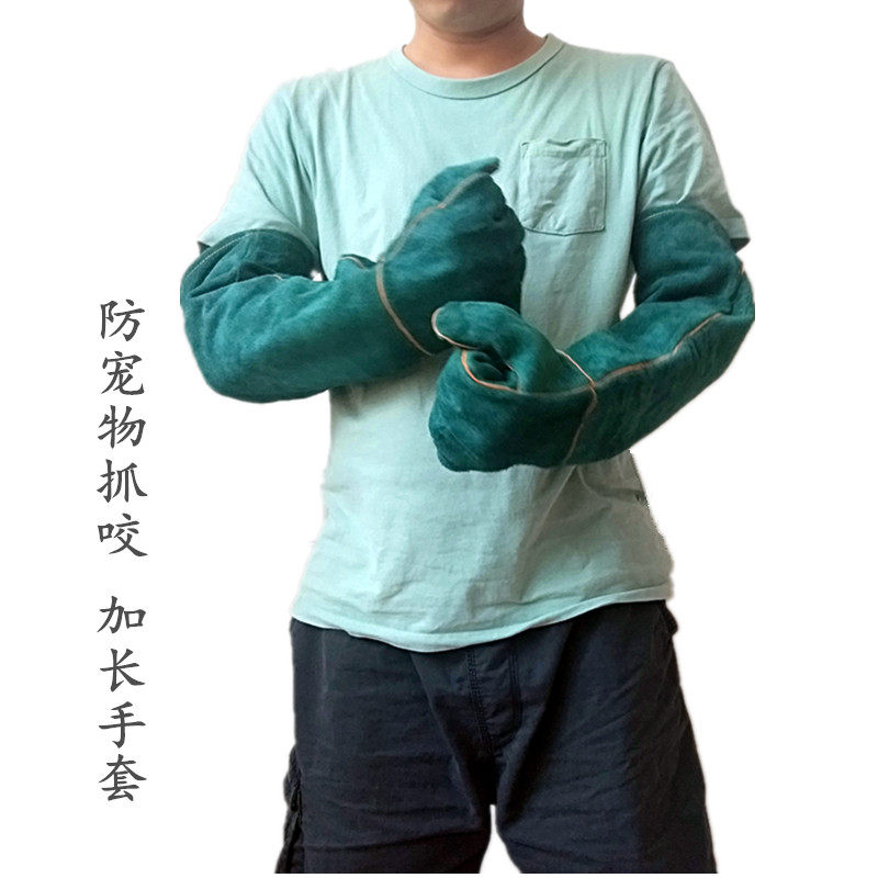 Pet anti-bite gloves 60CM All-in-one full leather lengthened anti-scratcher full leather electric welding to cure full-hand thermal insulation fire protection