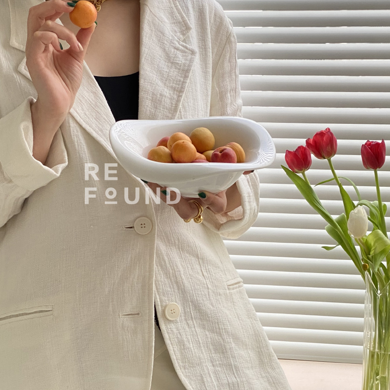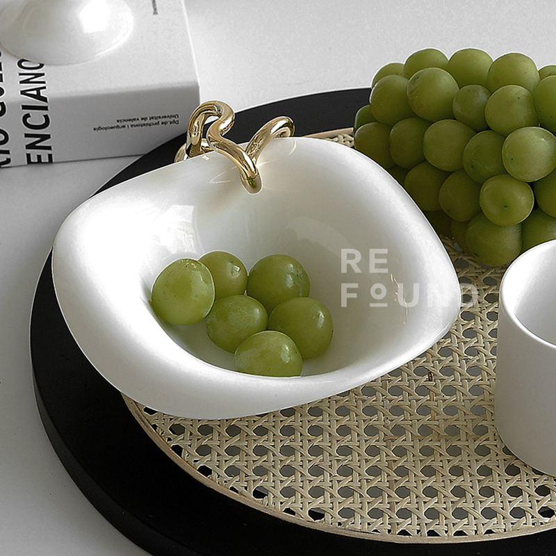 ReFound modern French style Profiled Ceramic Salad Bowl West Dining Bowl Bull Pan Tilt Wavy Side Trendy Cutlery