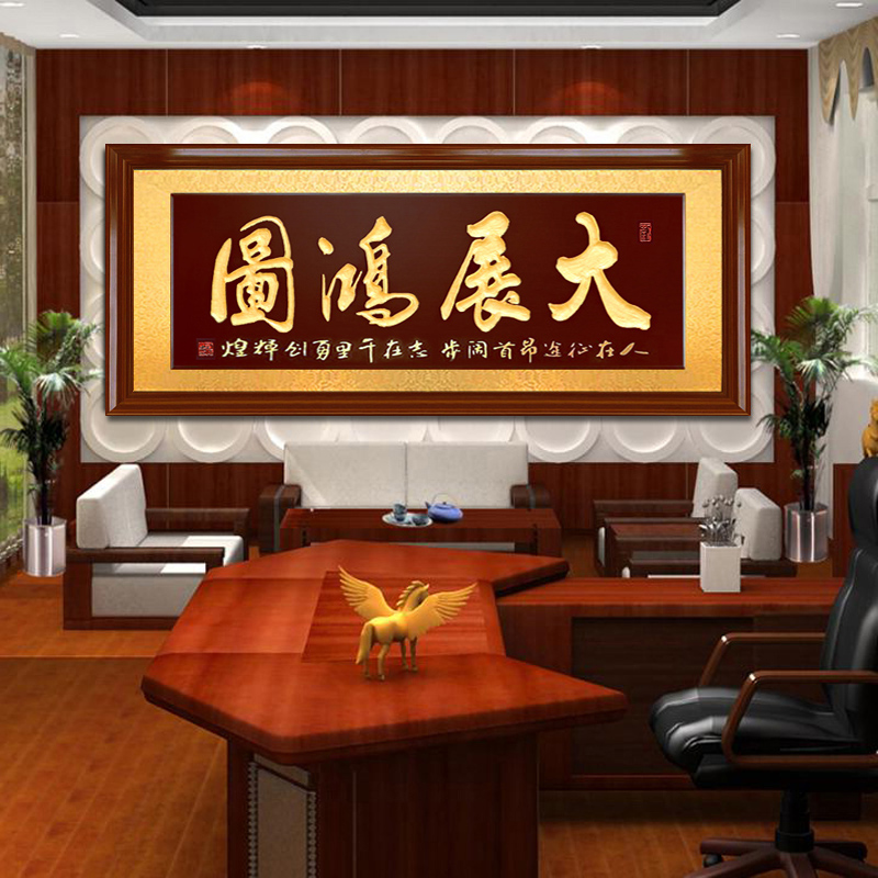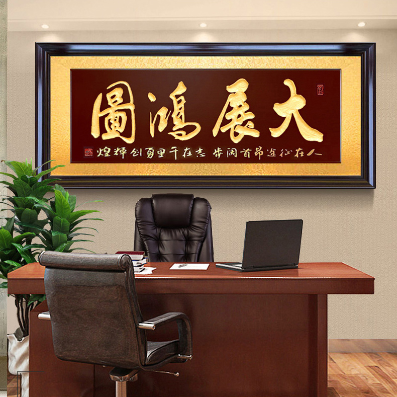 Dazhan Hongtu solid wood board carving calligraphy Company opened gifts boss office hanging painting hand-carved plaque