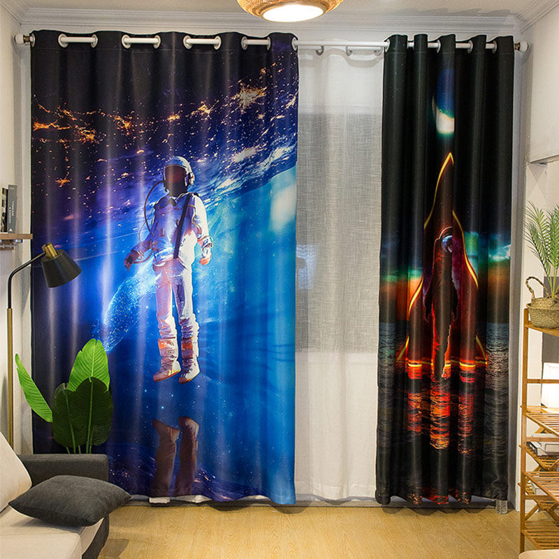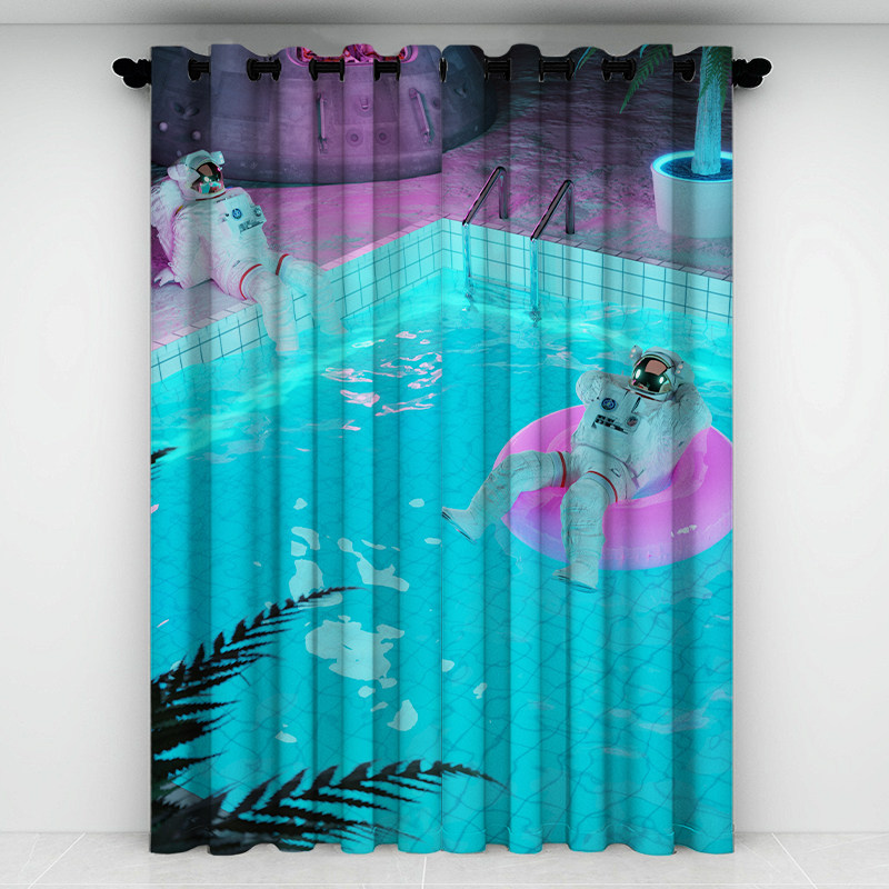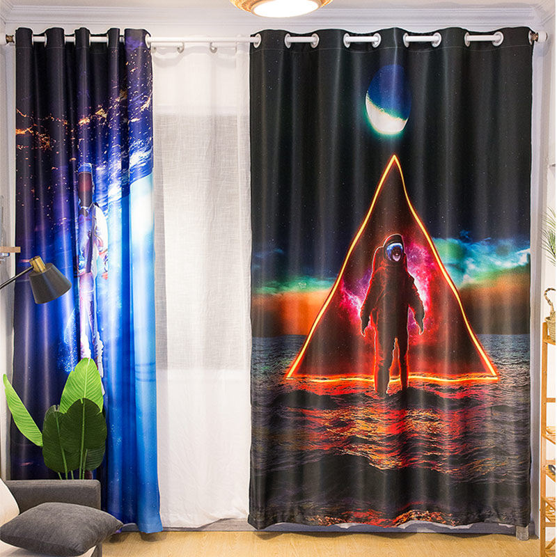 Custom long cord Coarse Hemp Moon Party Blue All-Shading Shading SUN PROTECTION SUNSCREEN BEDROOM LIVING ROOM WITH BALCONY CURTAINS NO.