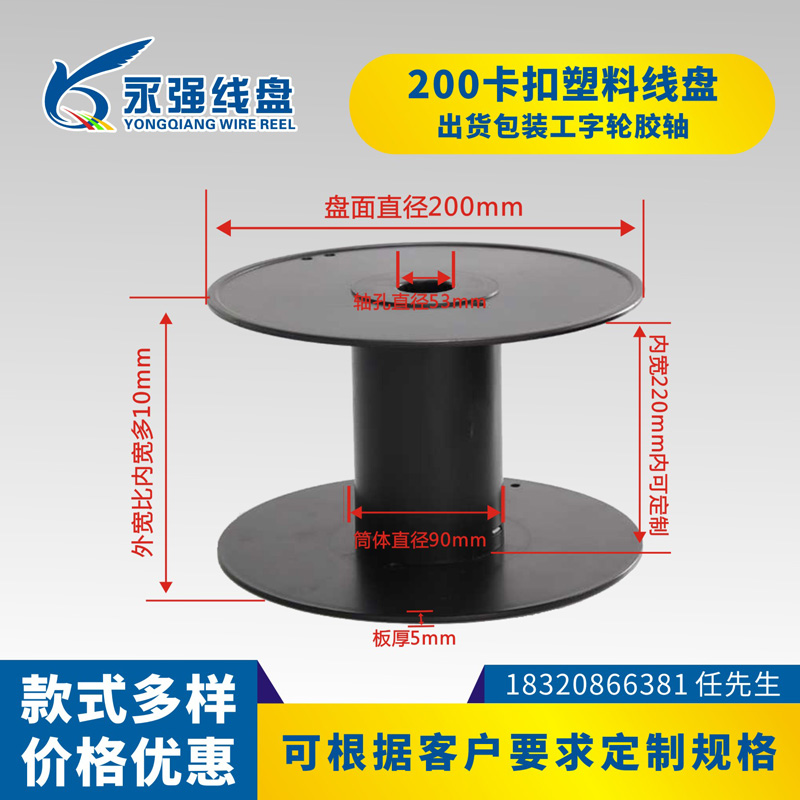 Cable reel rubber shaft 200-type buckle plastic reel rope ribbon webbing reel I-shaped wheel height can be customized