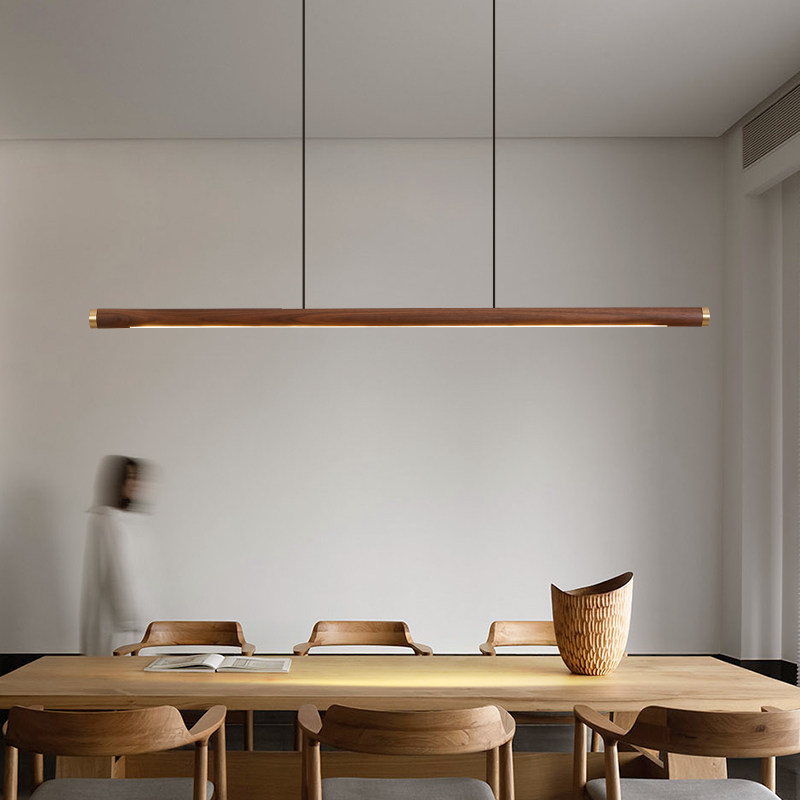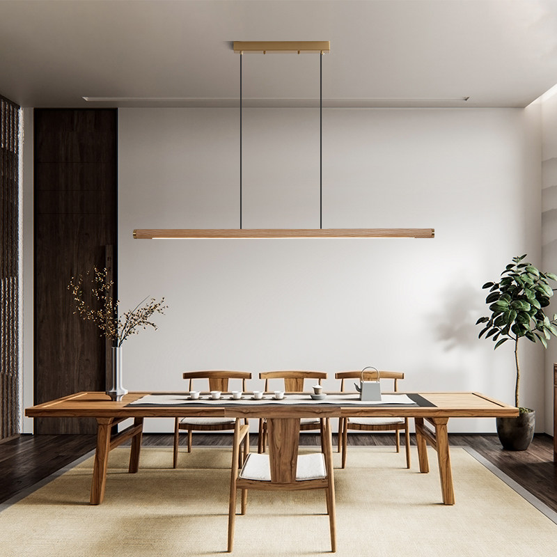 New Chinese dining room chandelier simple modern walnut all copper LED lamps Nordic minimalist bar chandelier