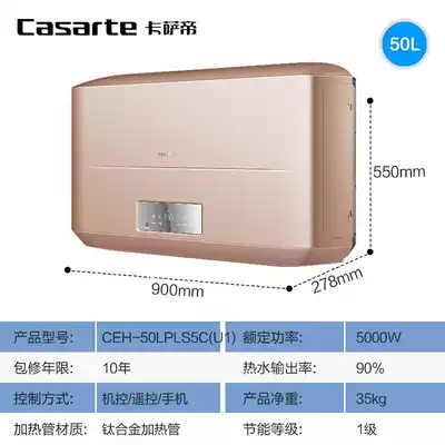 Casati electric water heater household 50 liters instant hot washing large water capacity double guts gold white purple(PLS5C)50 liters