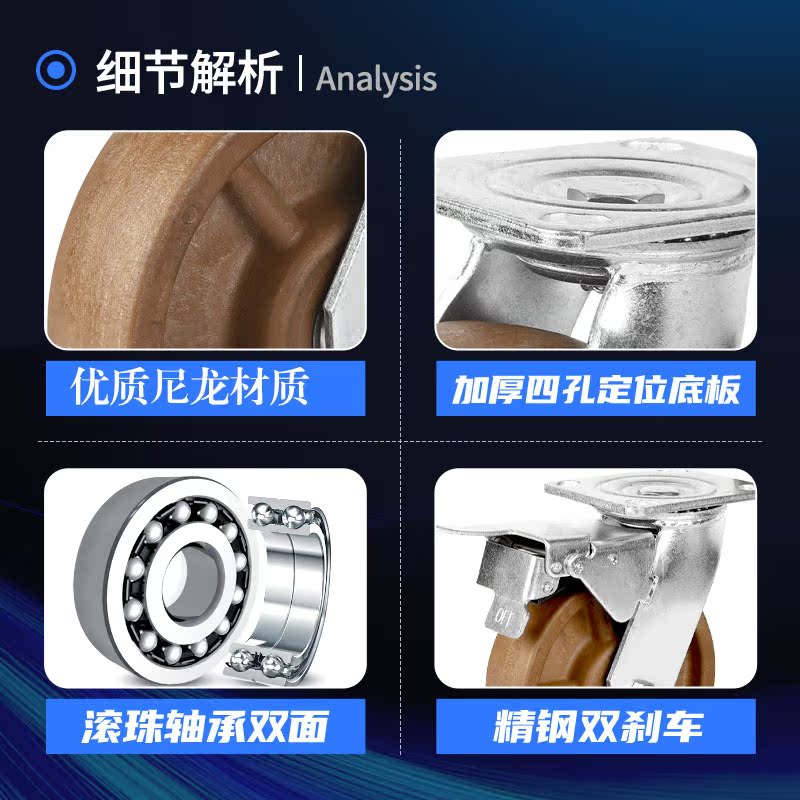 4-inch orientation (fixed wheel) 4 inch universal (360 ° steering wheel) 4 inch brake (360 ° brake wheel) 5 inch oriented (fixed wheel) 5 inch universal (360 ° steering wheel)
