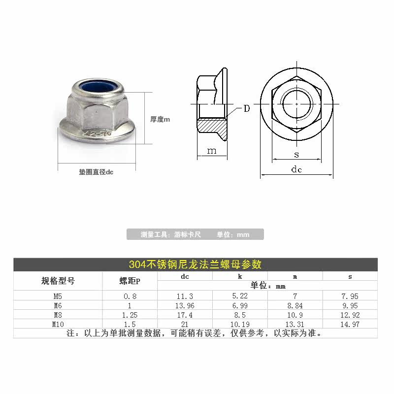 304 stainless steel nylon flange nut anti-slip locking external hexagonal screw cap flat disc with cushion screw cap M6